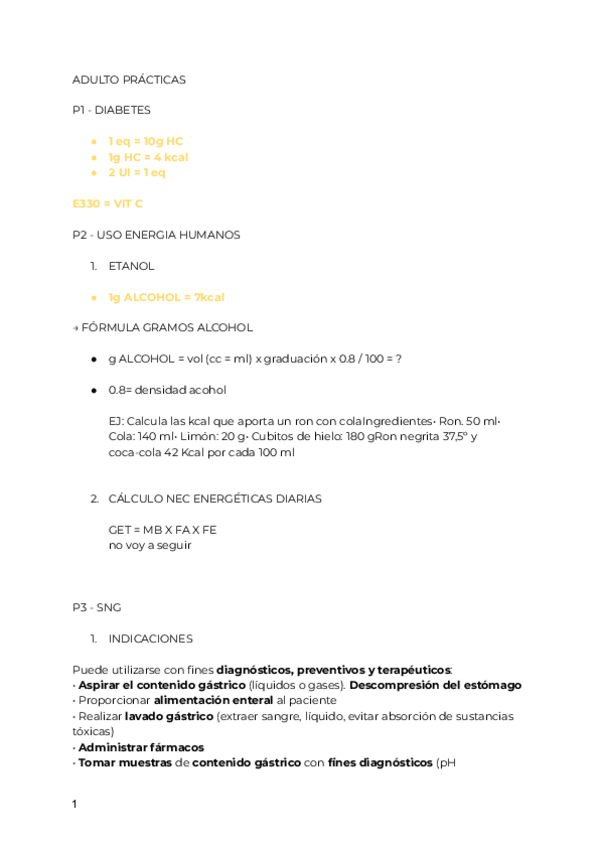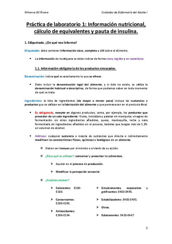 Práctica de laboratorio 1: Información nutricional, cálculo de equivalentes y pauta de insulina.