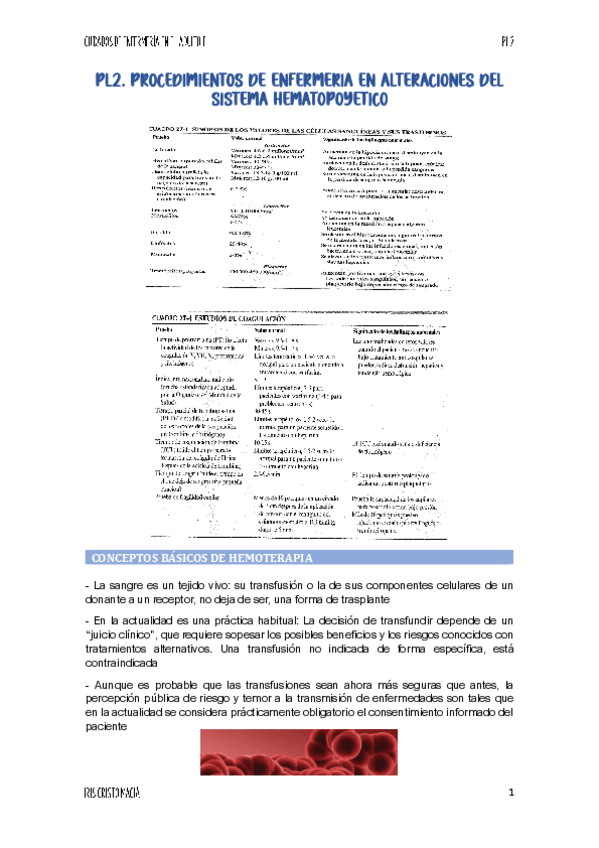 Tema 2B: Cuidados de enfermería en pacientes con trastornos hematológicos y linfáticos.