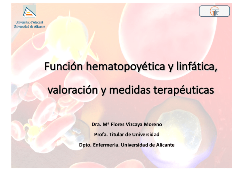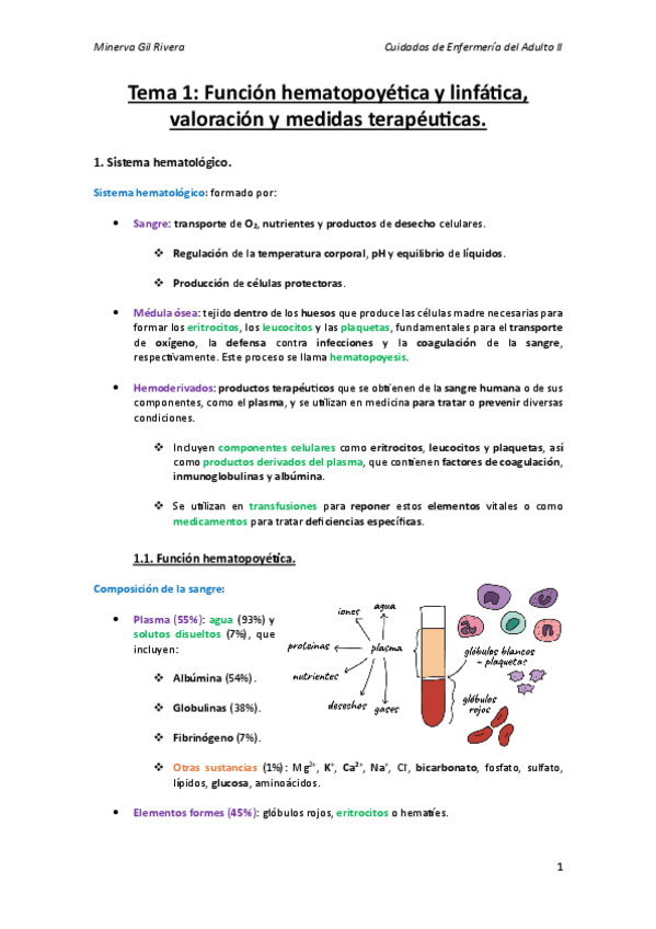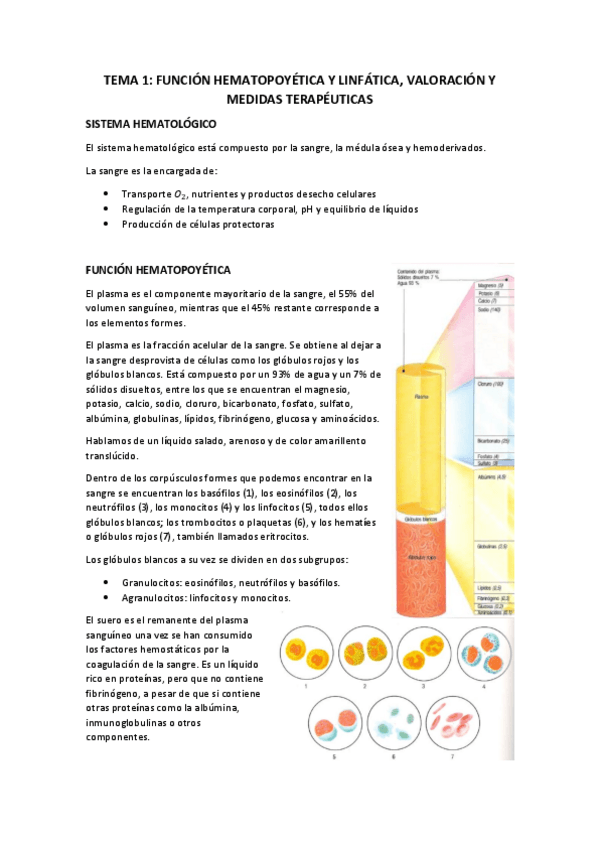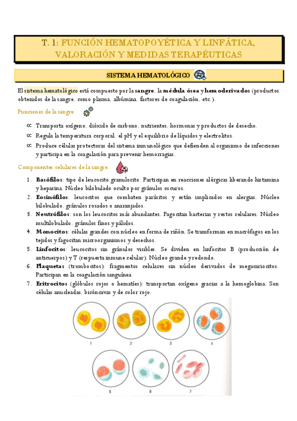 T. 1: FUNCIÓN HEMATOPOYÉTICA Y LINFÁTICA, VALORACIÓN Y MEDIDAS TERAPÉUTICAS