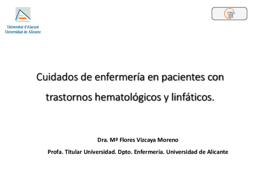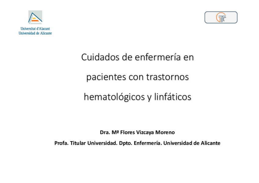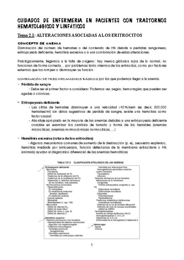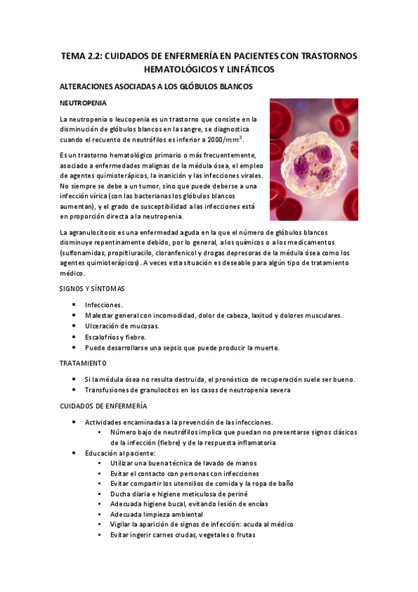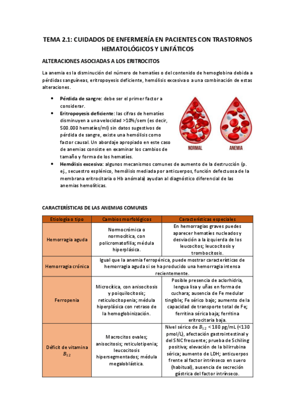 Tema 2A: Cuidados de Enfermería en pacientes con trastornos hematológicos y linfáticos.