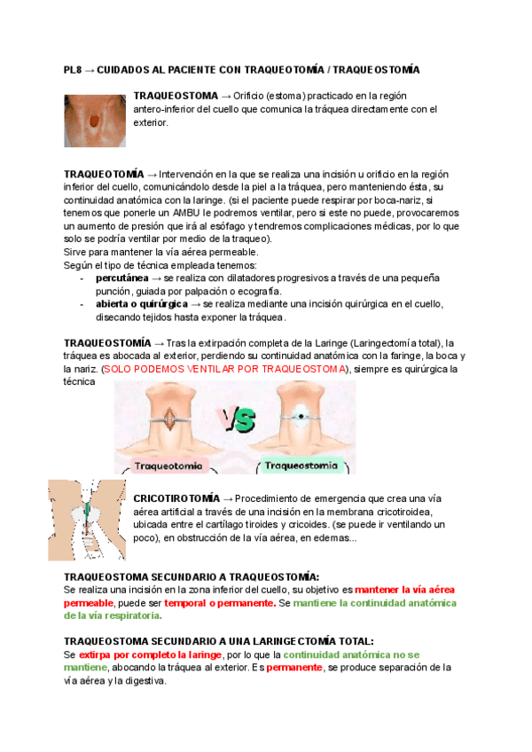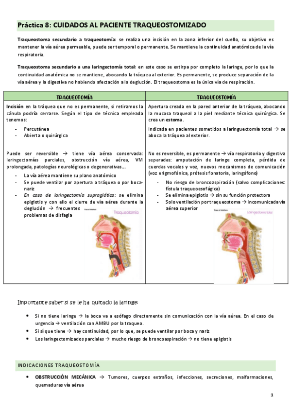 Práctica 8: Cuidados al paciente con traqueotomía o traqueostomía.
