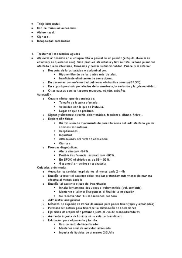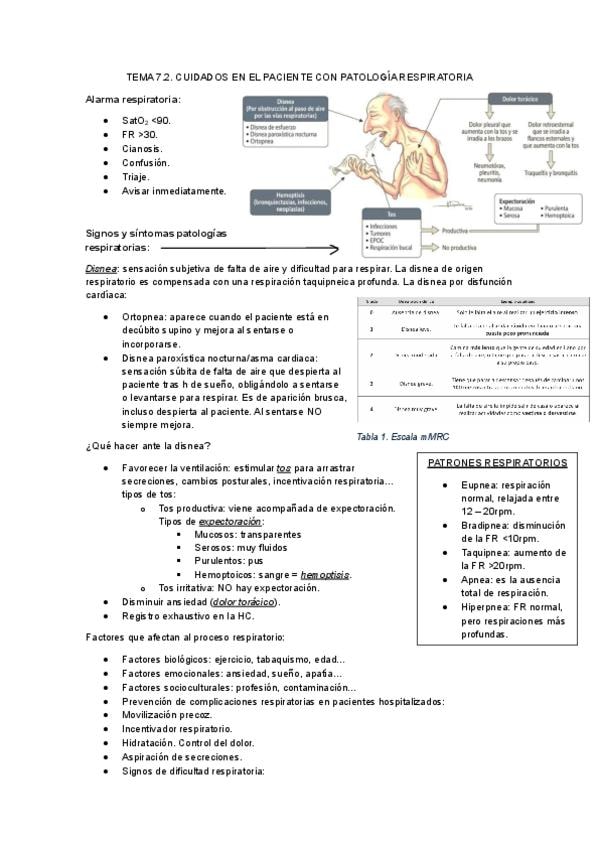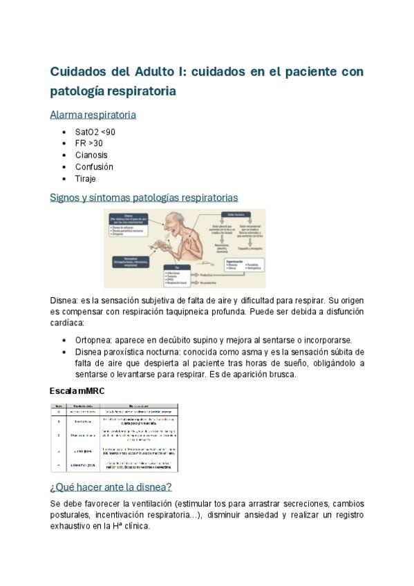 Apuntes Cuidados del Adulto I: cuidado al paciente con patología respiratoria, con FOTOS, APUNTES Y TABLAS DE RESUMENES