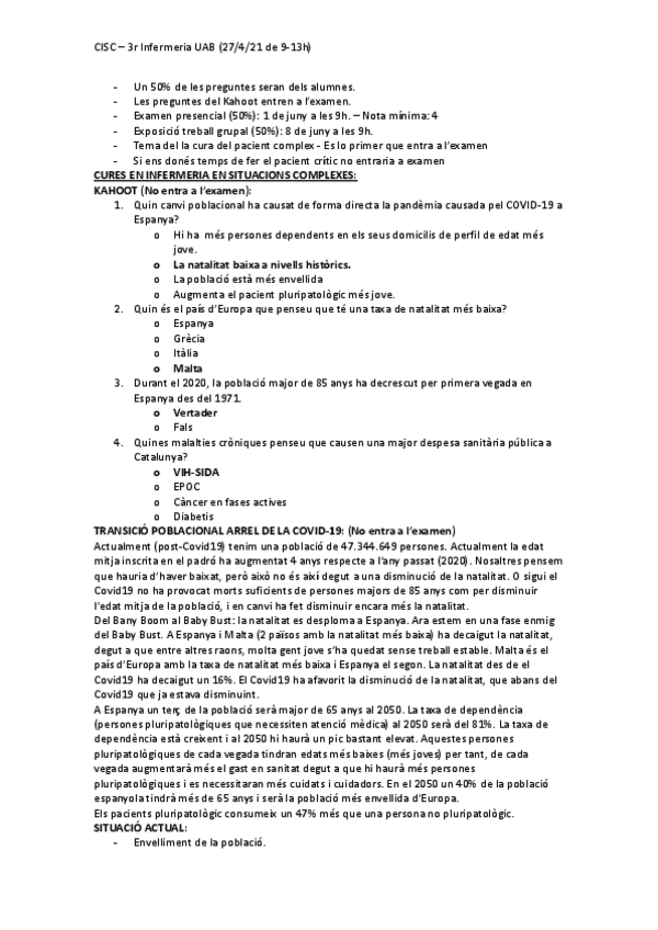 He publicado nuevos apuntes de 3º Cuidados Enfermeros en Situaciones Complejas: Teoria i examens