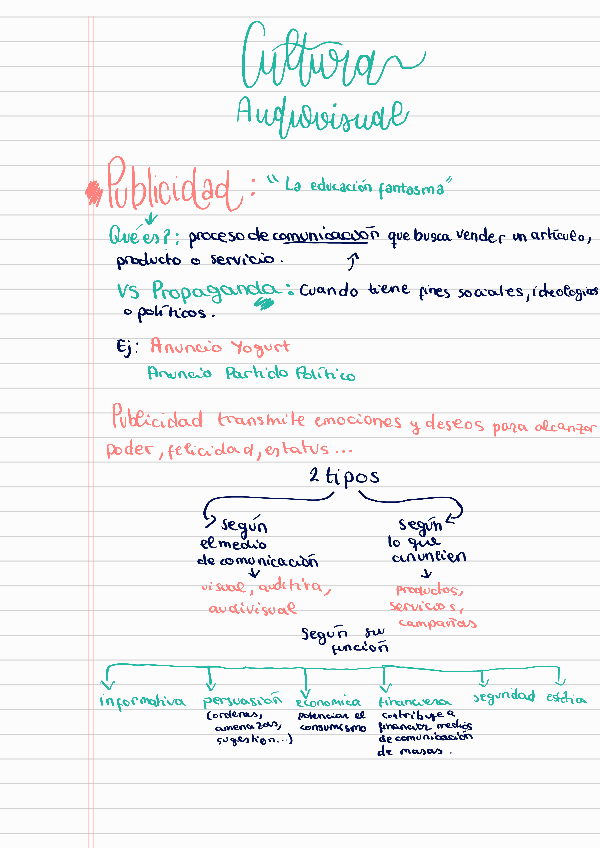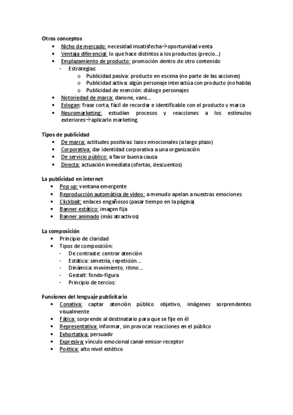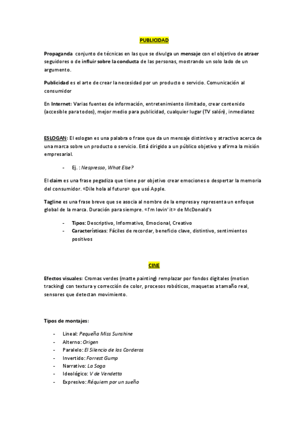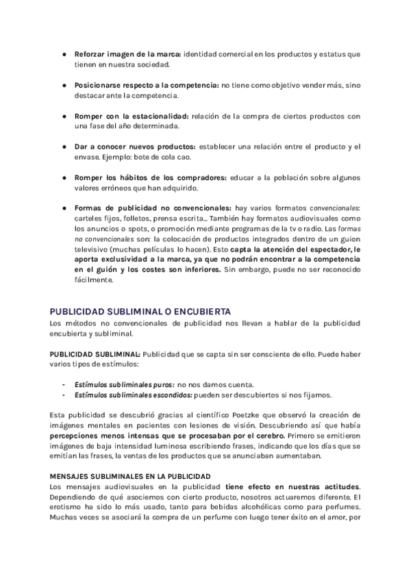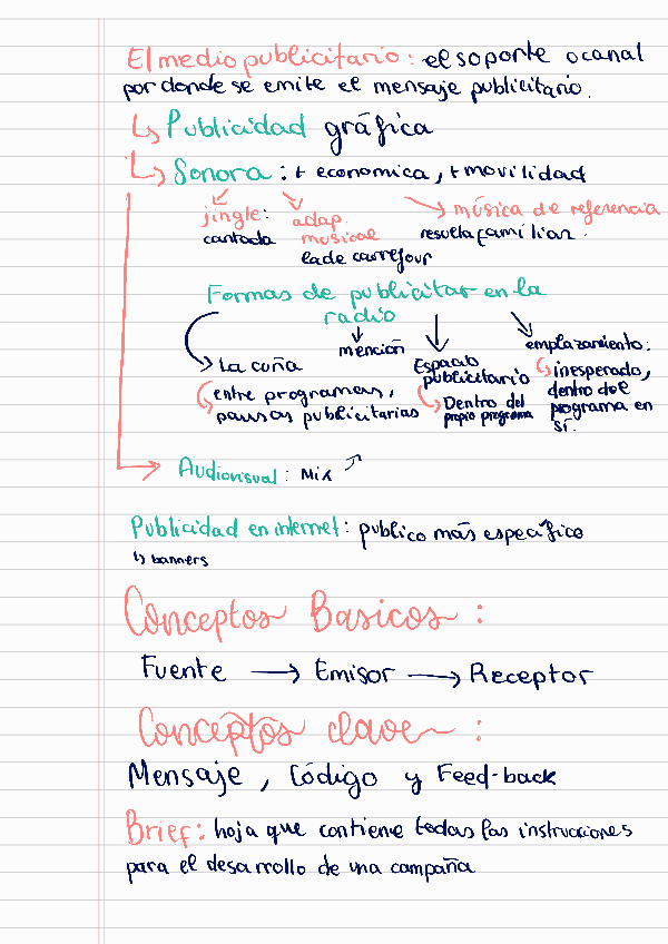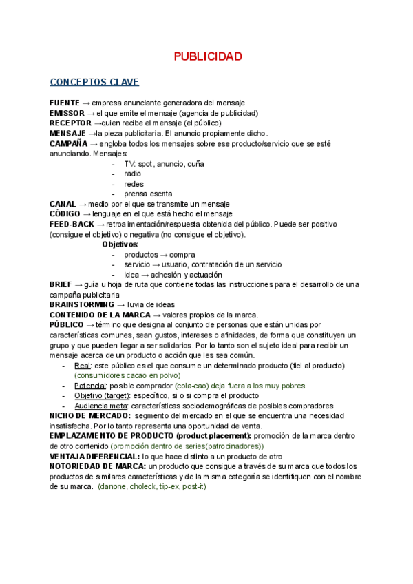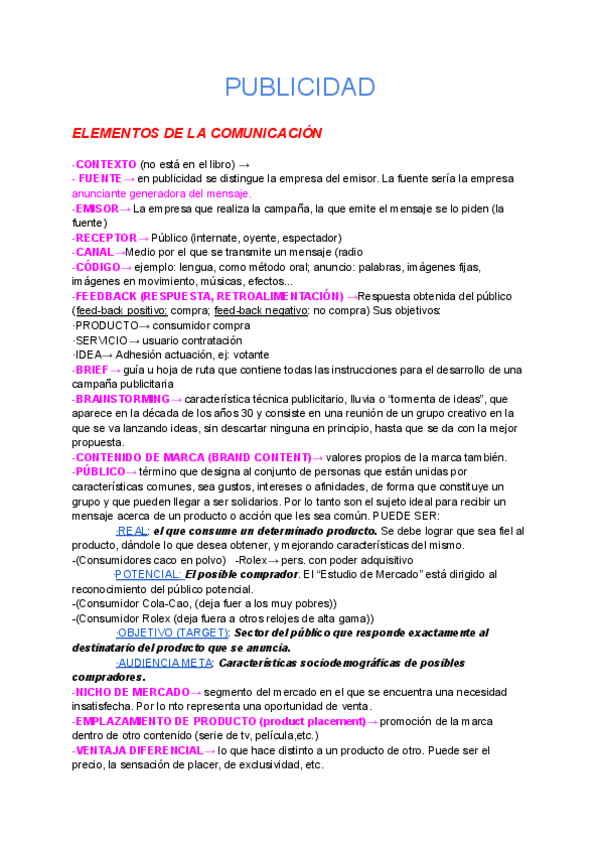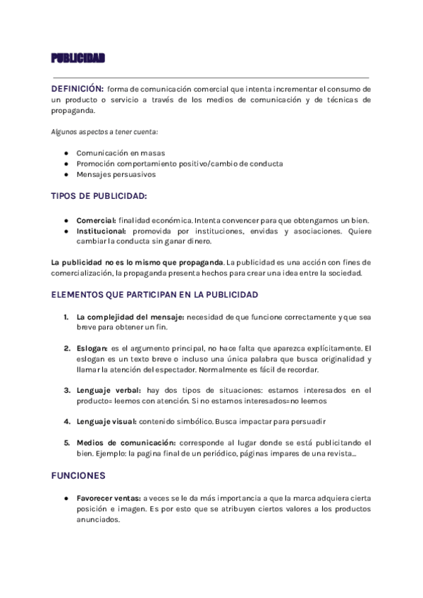 Resúmenes completos, claros, organizados y aesthetic del temario de publicidad más preguntas tipo PAU con sus respuestas.