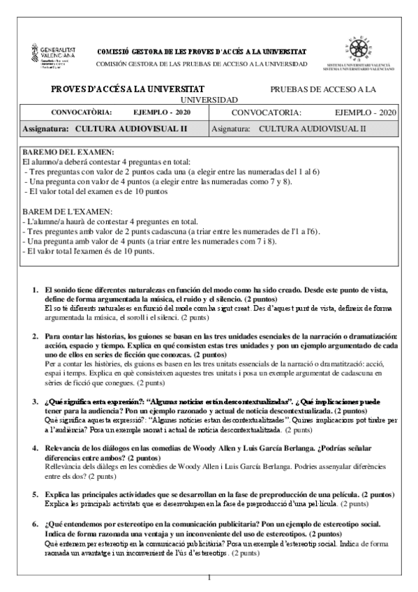 Todos los exámenes PAU de Cultura Audiovisual