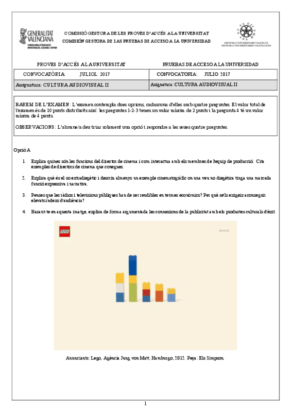 He publicado nuevos examenes de Cultura Audiovisual II: Preguntas PAU sobre Publicidad (+ respuestas).pdf
