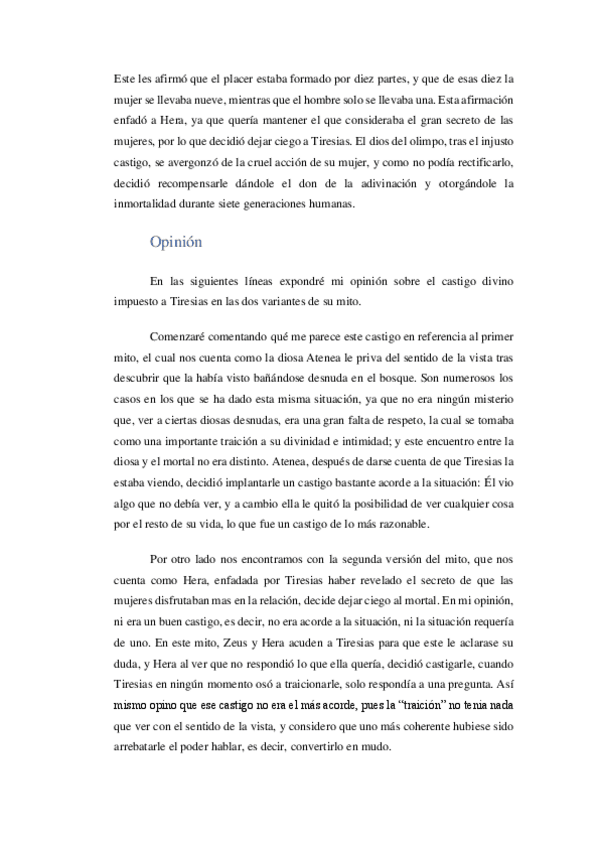 Trabajo sobre el castigo de los dioses centrado en Tiresias. incluye introducción, dos versiones del mito, Tiresias en el arte y opinión personal.