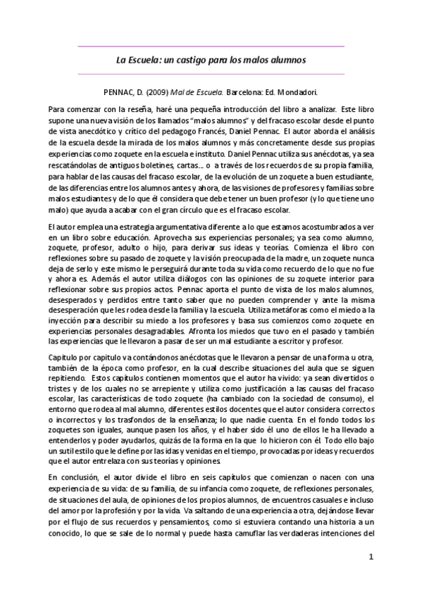 He publicado nuevos apuntes de 2º Cultura, Medio y Enseñanza de lo Social: Resena-Mal-de-Escuela.pdf