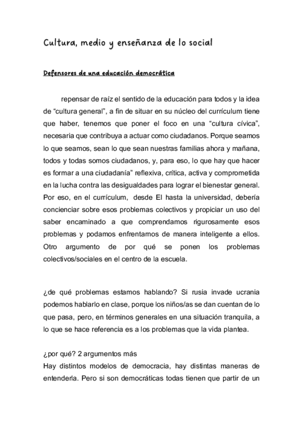 He publicado nuevos apuntes de 2º Cultura, Medio y Enseñanza de lo Social: resumen-lecturas-cultura.pdf