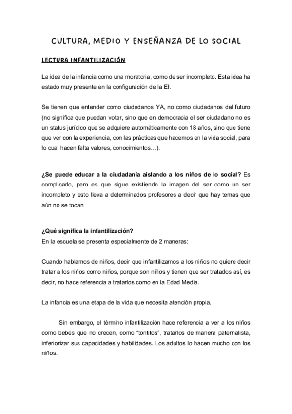 He publicado nuevos apuntes de 2º Cultura, Medio y Enseñanza de lo Social: LECTURA-INFANTILIZACION.pdf