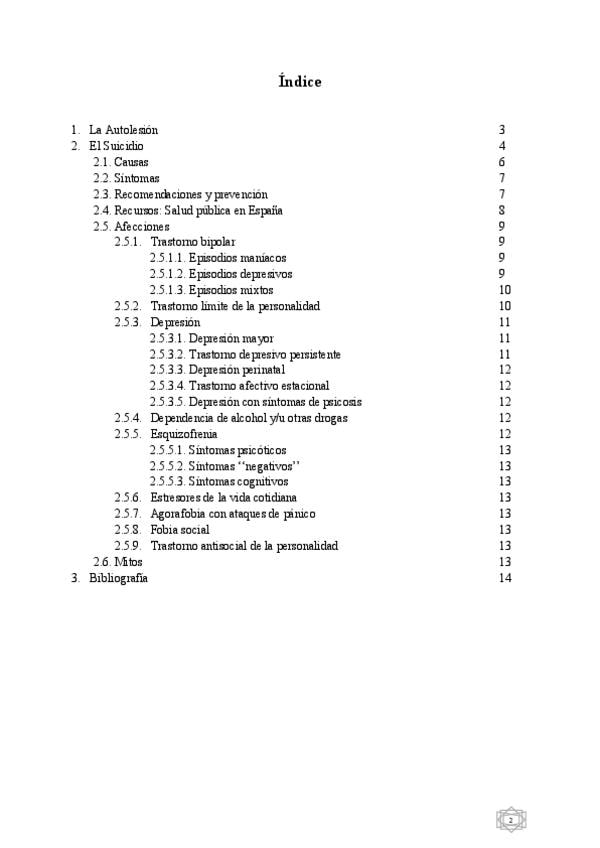Trabajo de sensibilización que aborda la autolesión y el suicidio. Analiza causas, síntomas y recursos de la Salud Pública en España, además de trastornos asociados como el bipolar, límite de la personalidad y distintos tipos de depresión.
