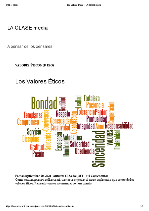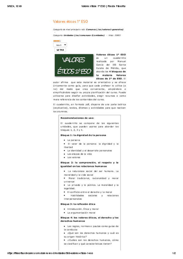 He publicado nuevos apuntes de 1º Cultura y Valores Éticos: Valores-eticos-1o-ESO--Rincon-Filosofia.pdf