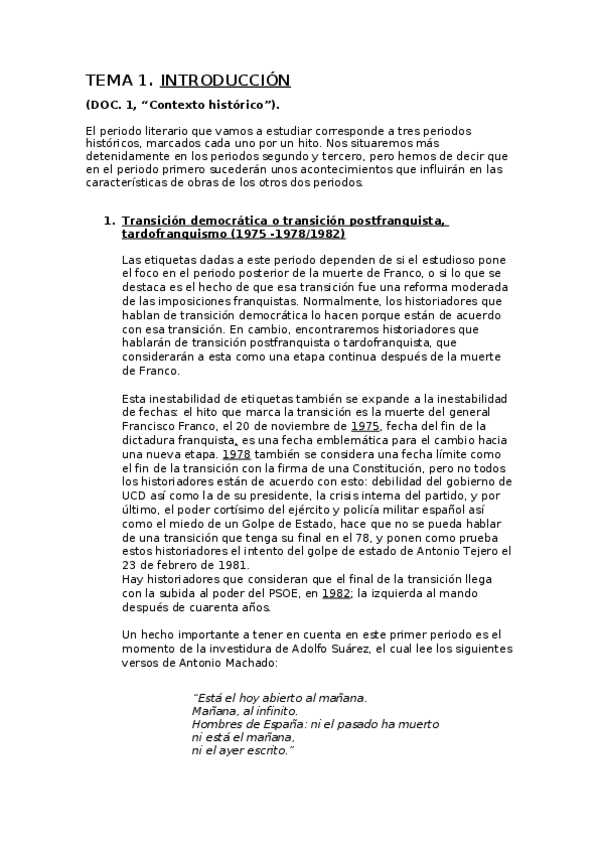 He publicado nuevos apuntes de 4º Curso Monográfico de Literatura Española del Siglo XX: Siglo XX tema 1.docx