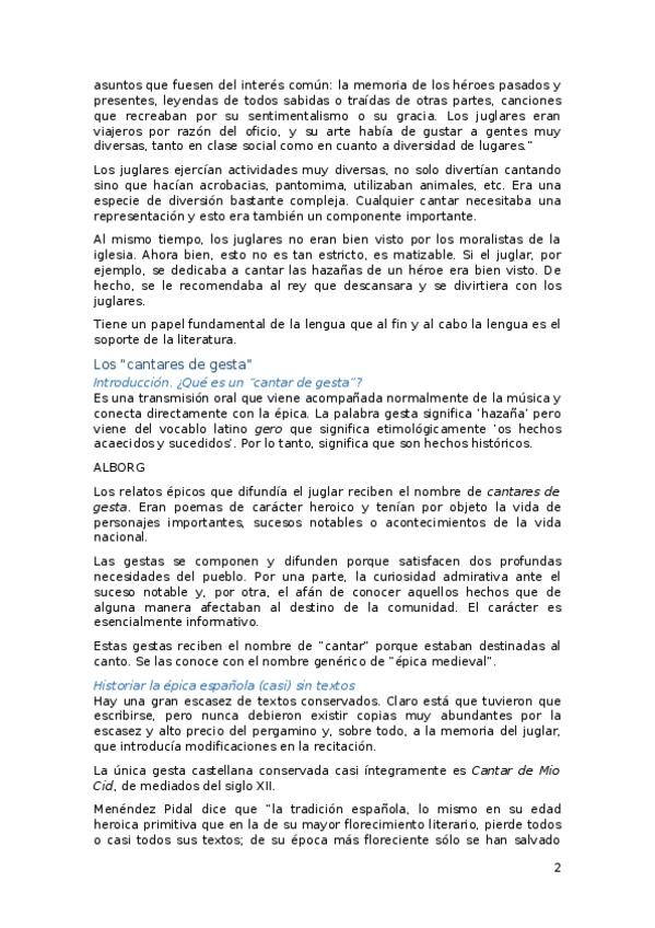 Apuntes Curso Monográfico de Literatura Española Medieval (completos + comentarios)
