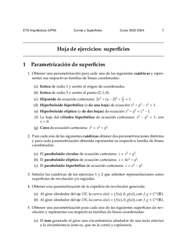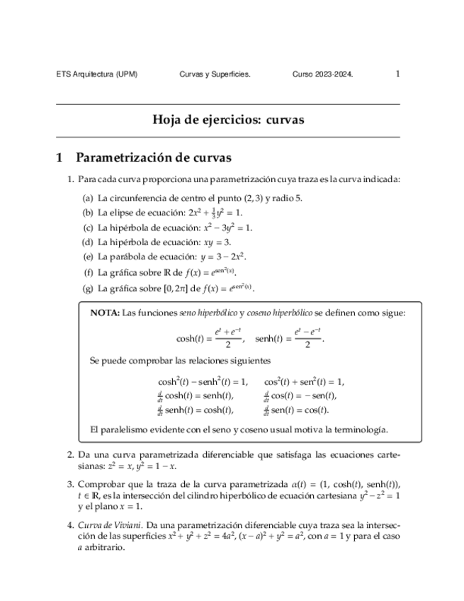 EJERCICIOS CURVAS Y SUPERFICIES 2023-2024
