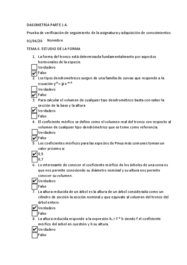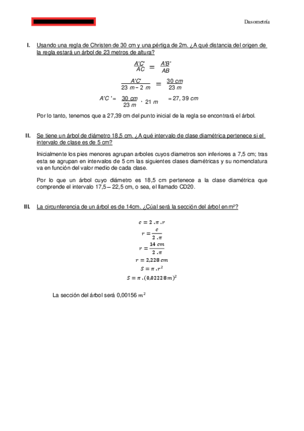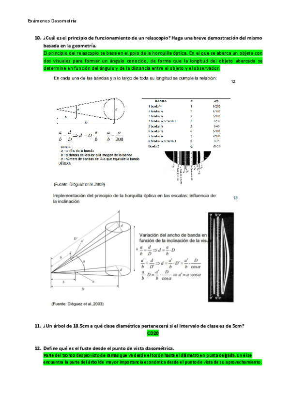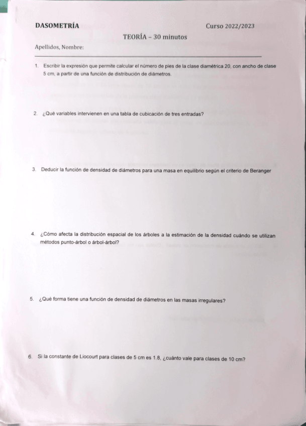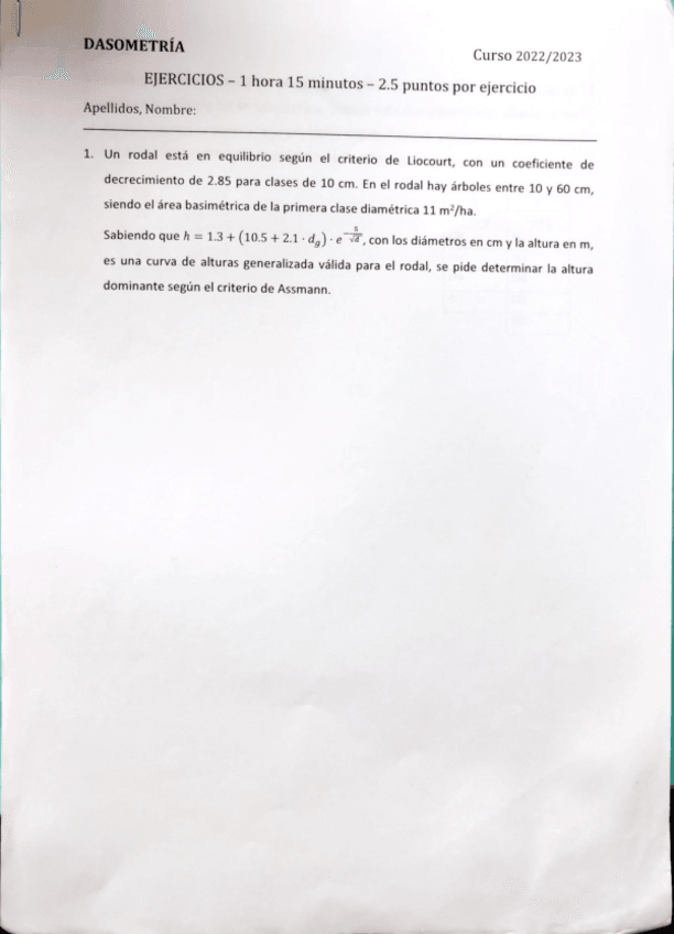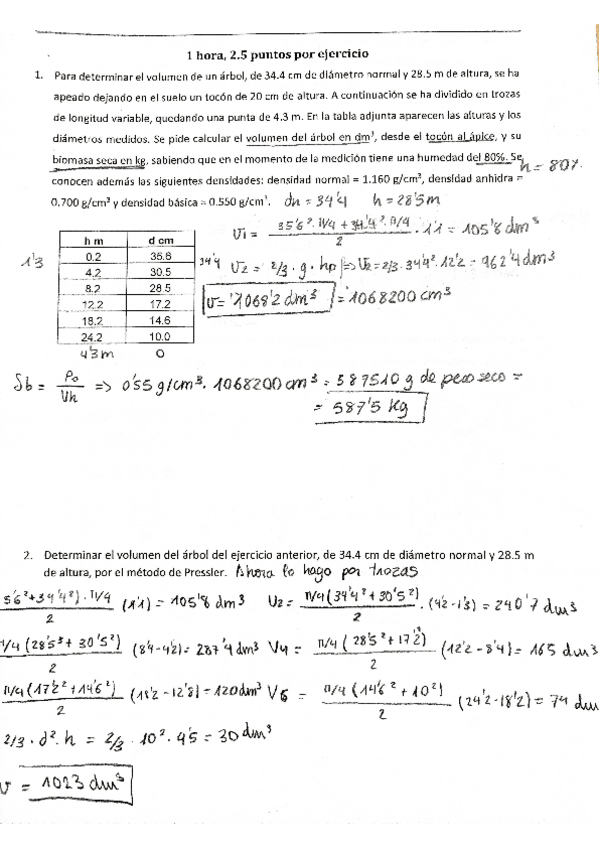 Exámenes resueltos y sin resolver de la asignatura de dasometría. Exámenes reales de años anteriores