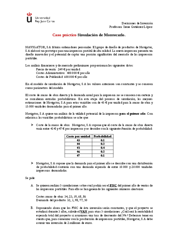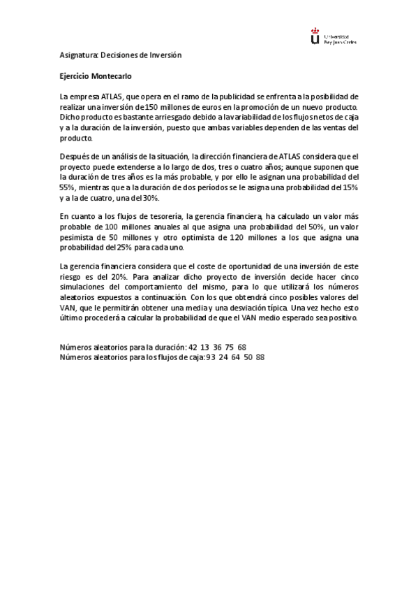 He publicado nuevos ejercicios de 3º Decisiones de Inversión: Caso-practico-simulacion-Monte-Carlo.-Enunciado.pdf