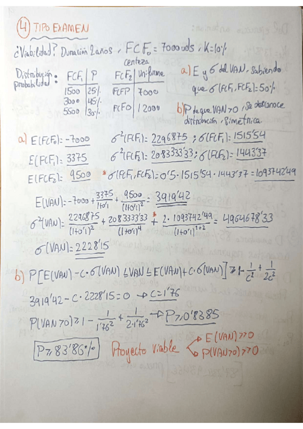 dos ejercicios tipo examen, paramétricos y otro de flujos de caja
