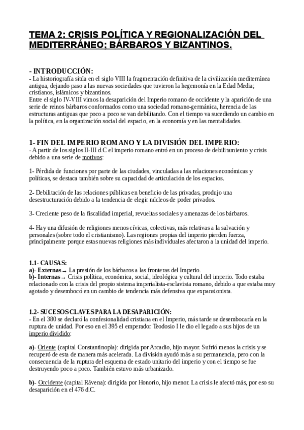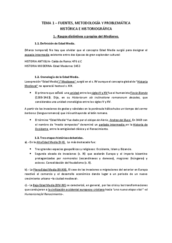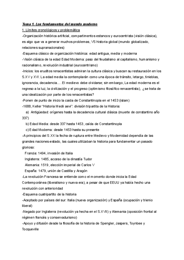 Apuntes por tema del Medievo a la modernidad