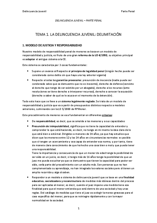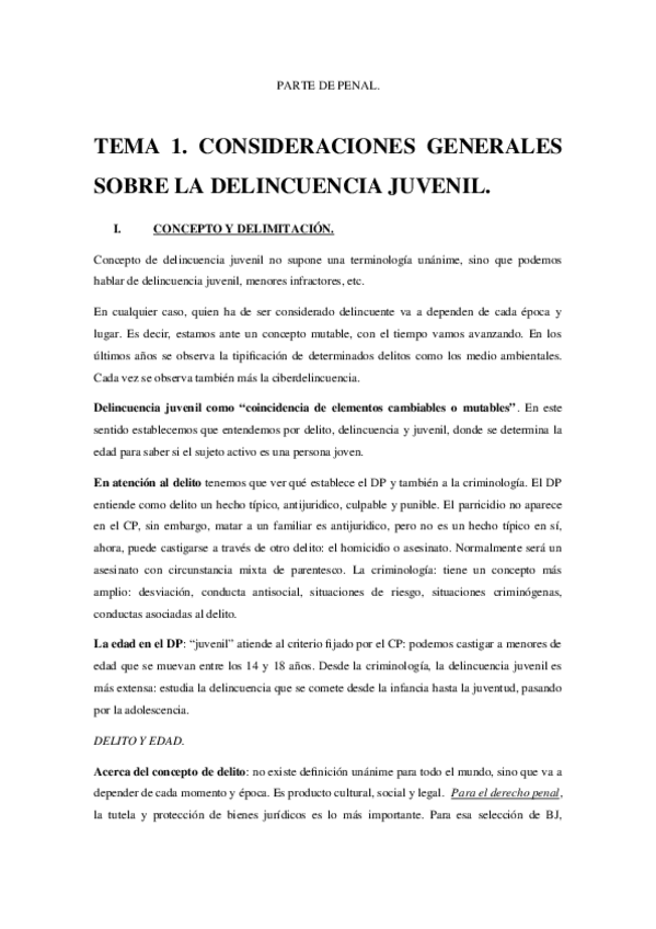 Temas 1 y 2 Delincuencia Juvenil Parte Penal