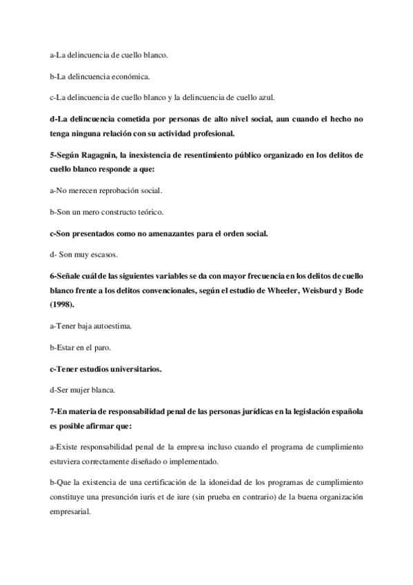 Preguntas tema 5 de Delincuencia de cuello blanco