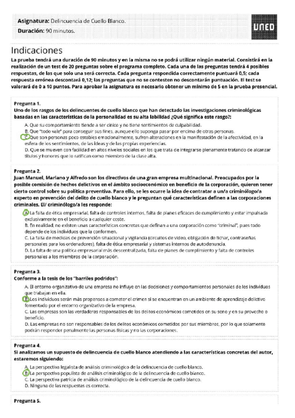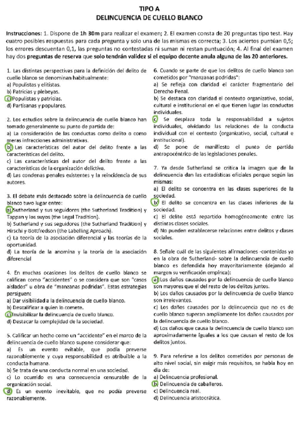 EXAMENES RESUELTOS AÑO 2019-2020 DELINCUENCIA DE CUELLO BLANCO