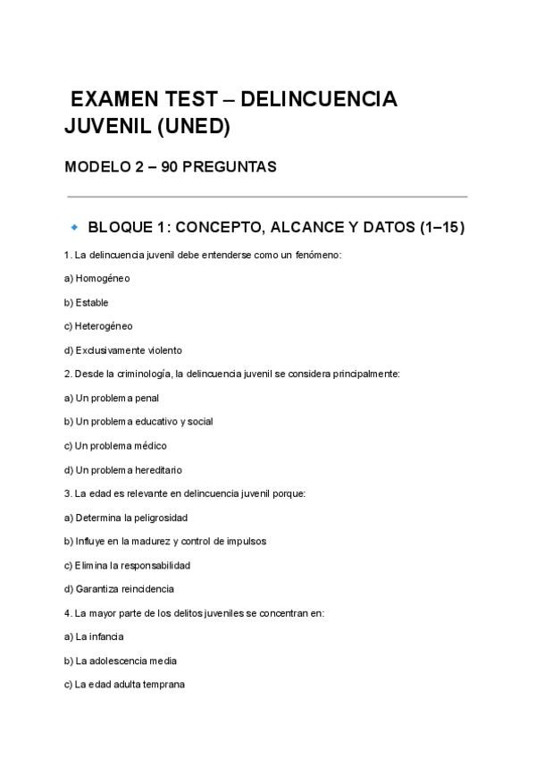 TEST QUE CAEN SI O SI EN EL EXAMEN DE DELINCUENCIA JUVENIL, RECOPILADAS Y ESTUDIADAS EXÁMENES ANTERIORES