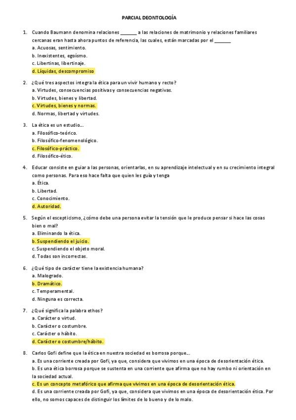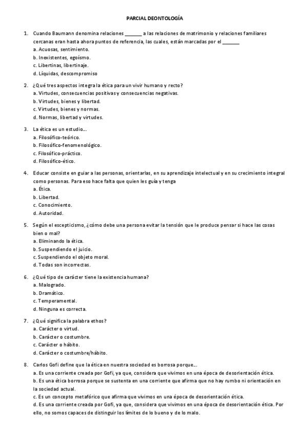 He publicado nuevos examenes de 1º Deontología: ética y responsabilidad social de la educación: Key terms for exam Deontology Fall 24 Ethics Exam Overview