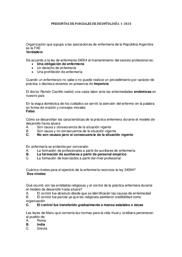 He publicado nuevos ejercicios de 1º Deontología I: Preguntas-modelo-de-parcial-2020-studyenf.pdf