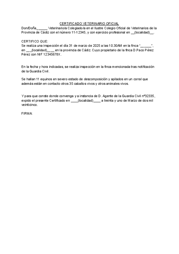 He publicado nuevos practicas de 4º Deontología, Medicina Legal y Legislación Veterinaria: Practica-3-legal-certificado-veterinario.pdf