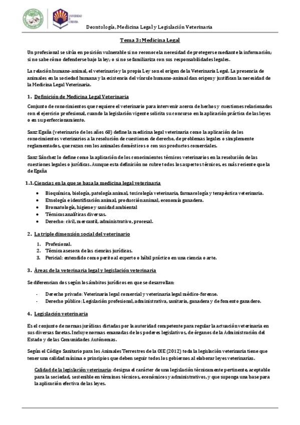 He publicado nuevos apuntes de 4º Deontología, Medicina Legal y Legislación Veterinaria: LECCION-3.-MEDICINA-LEGAL-VETERINARIA.pdf