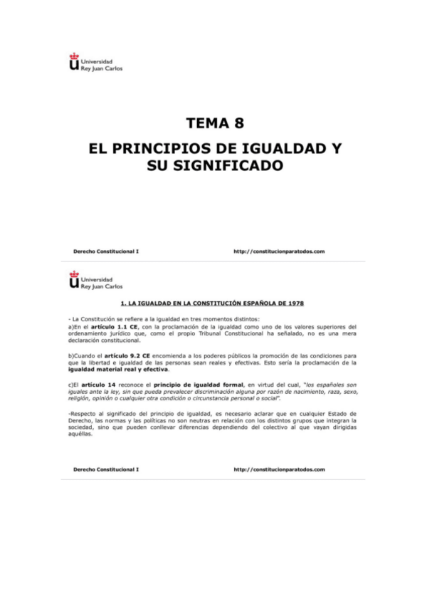 He publicado nuevos apuntes de 1º Deontología profesional, principios jurídicos básicos e igualdad (Derecho Constitucional I): t8.pdf