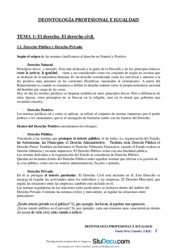 He publicado nuevos apuntes de 1º Deontología Profesional, Principios Jurídicos Básicos e Igualdad (introducción Al Derecho): INTRODUCCION-AL-DERECHO-tema-1.pdf