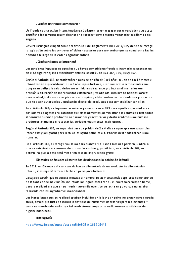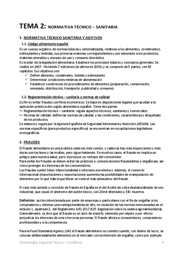 En los apuntes de deontología, dos errores, (tema 3) la parte de directiva 1169/2011/CE es obligatoria (no voluntaria) y en el tema 2, sustitución de especie u origen es de no conformidad (no de adulteración)