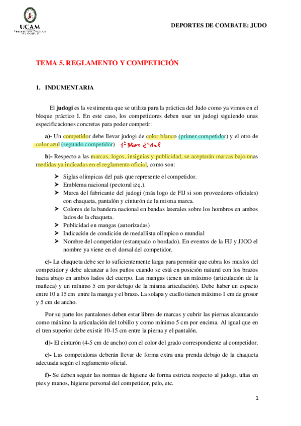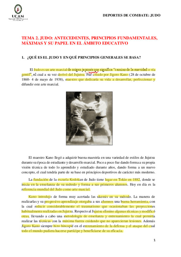 Apuntes de Judo + subrayado lo más importante + anotaciones del profesor