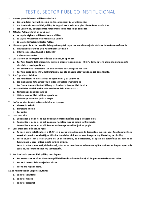 He publicado nuevos apuntes de 1º Derecho Administrativo.: Test del tema 11-17