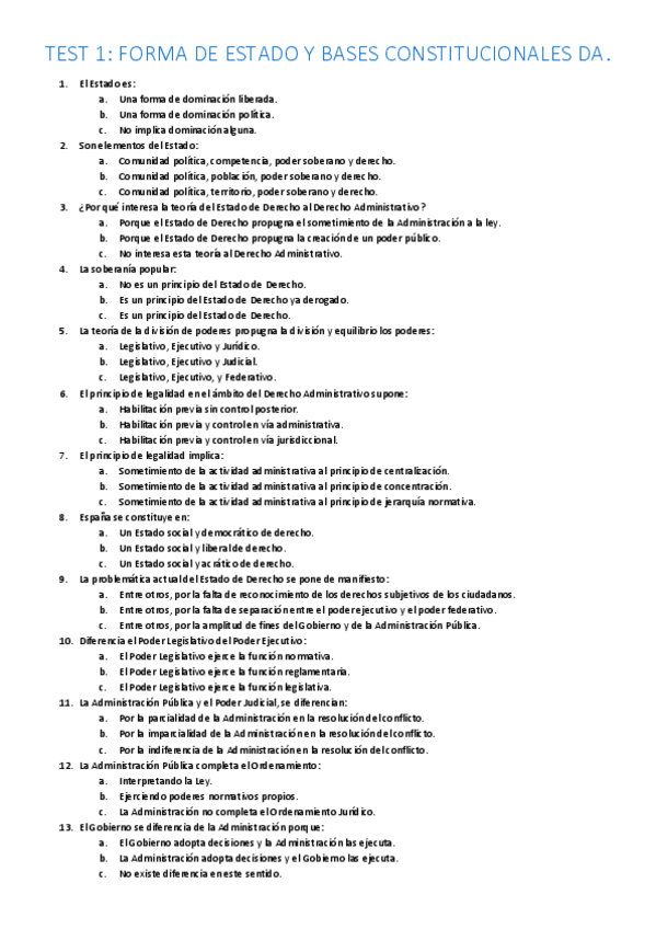 He publicado nuevos apuntes de 1º Derecho Administrativo.: Test del tema 1-10