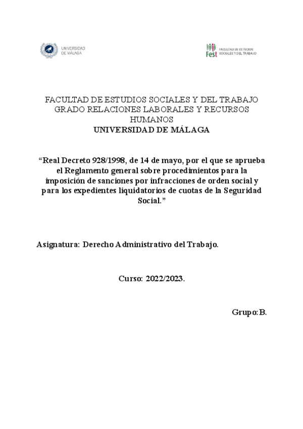 He publicado nuevos ejercicios de 2º Derecho Administrativo del Trabajo: Real-Decreto-9281998-de-14-de-mayo-por-el-que-se-aprueba-el-Reglamento-general-sobre-procedimientos-para-la-imposicion-de-sanciones-por-infracciones-de-orden-social-y-para-los-expedientes-liquidatorios-de-cuo.pdf
