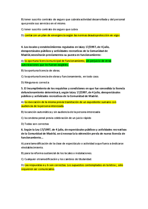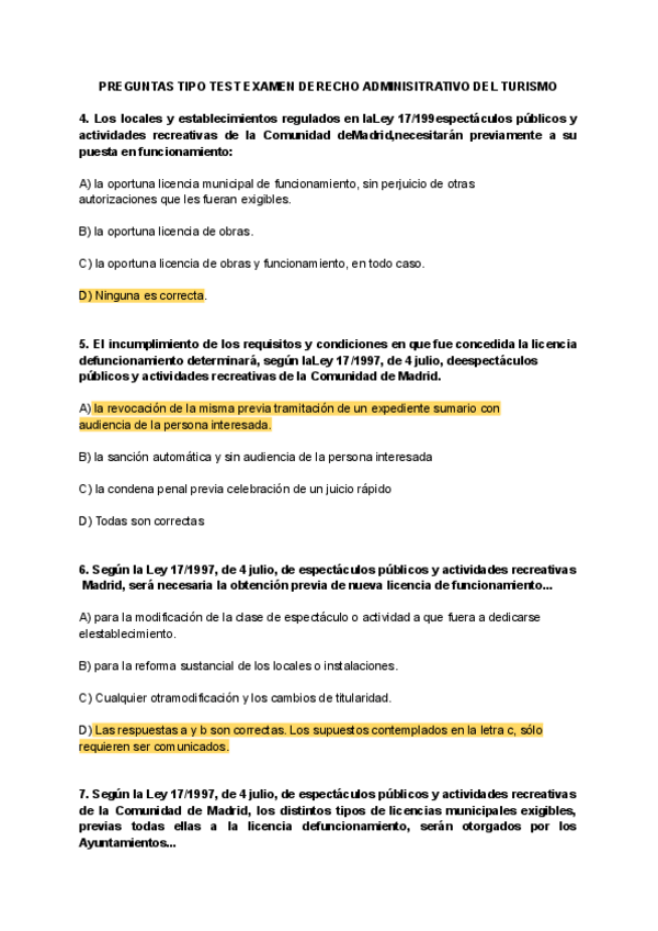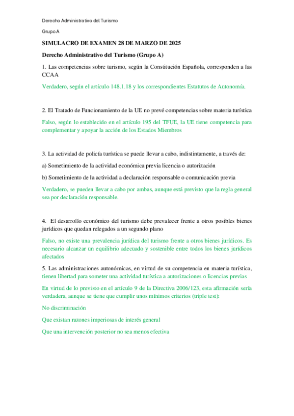 Simulacro del examen de derecho administrativo (muy similar al examen final). (2º curso turismo).