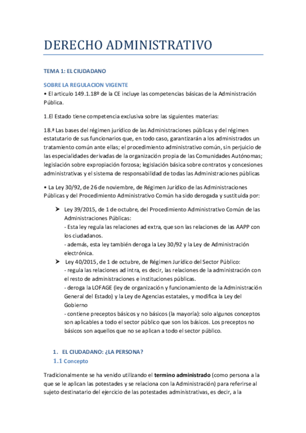 Apuntes temario completo derecho administrativo i