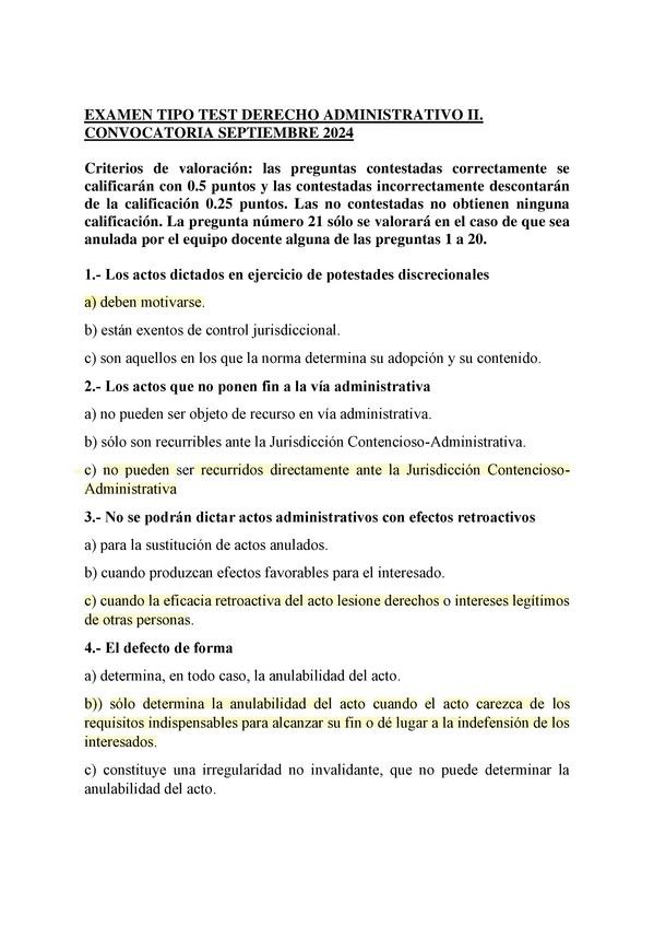 EXAMENES RESUELTOS AÑO 2023-2024 DERECHO ADMINISTRATIVO II