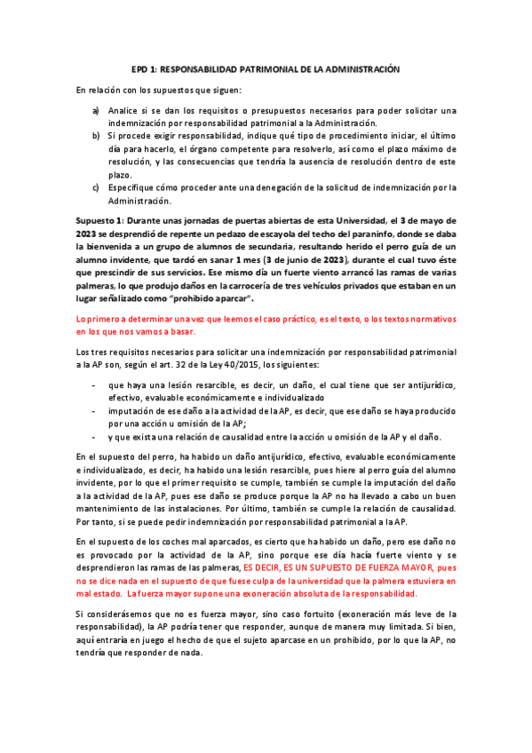 Ejercicios EPD RESUELTOS, Derecho Administrativo II