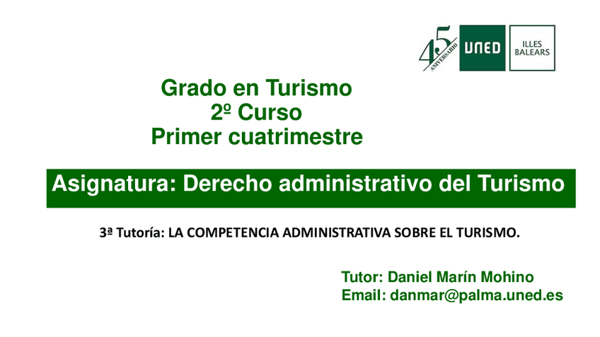 He publicado nuevos apuntes de 2º Derecho Administrativo y Legislación del Turismo: 03TUTORIA-LA-COMPETENCIA-ADMINISTRATIVA-SOBRE-EL-TURISMO.pdf