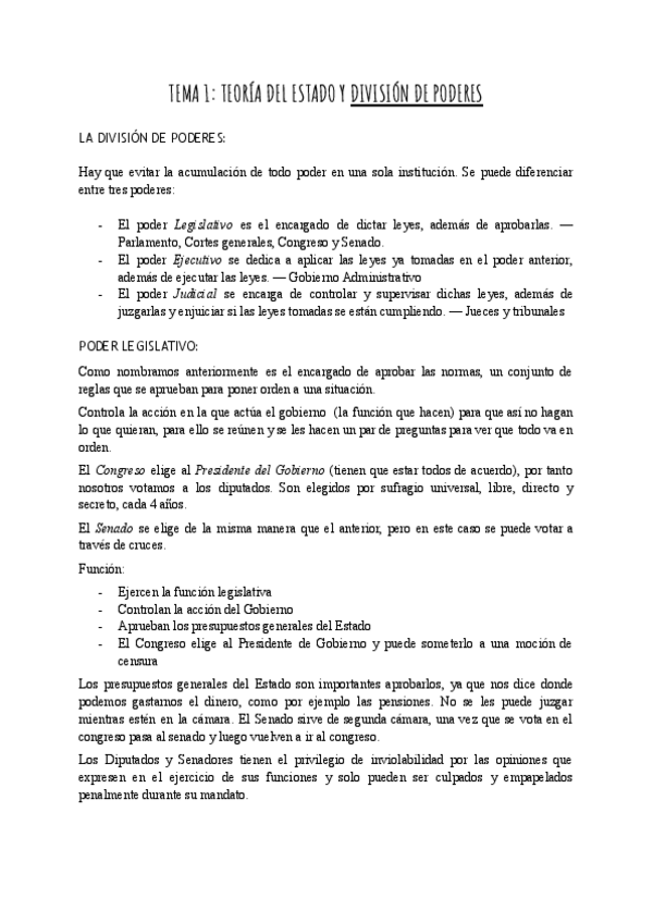 He publicado nuevos apuntes de 1º Derecho Administrativo: Tema 1. Teoría del estado y la división de poderes.pdf
