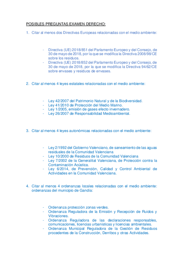 He publicado nuevos apuntes de 2º Derecho Ambiental y Administración Pública: PREGUNTAS-EXAMEN-DERECHO-MEDIOAMBIENTAL.pdf