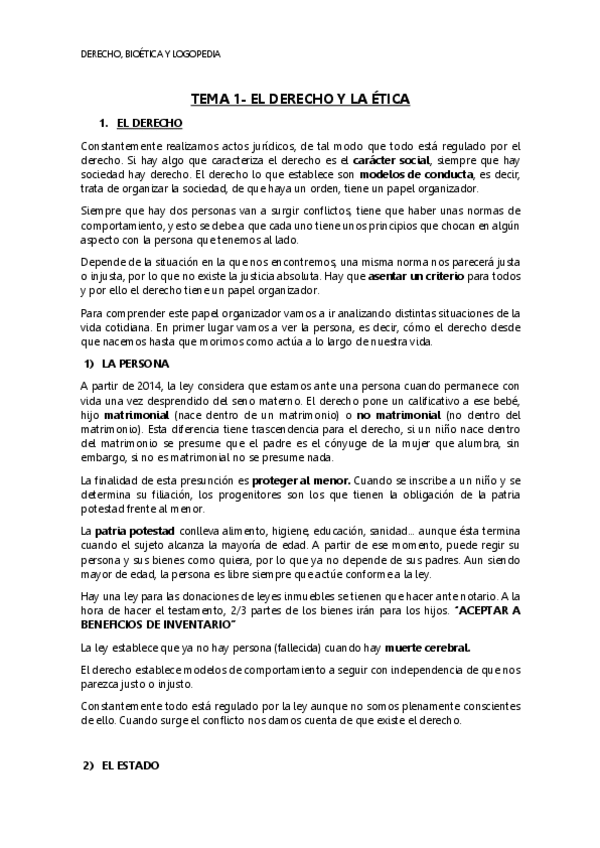 He publicado nuevos apuntes de 1º Derecho, bioética y logopedia: DERECHO-COMPLETO.pdf