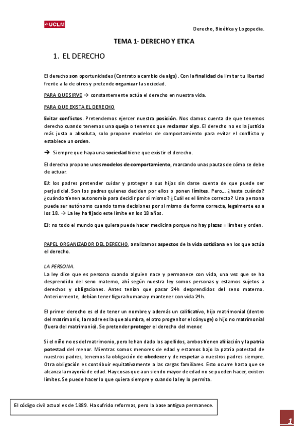 Apuntes 2023/2024, DERECHO, BIOÉTICA Y LOGOPEDIA