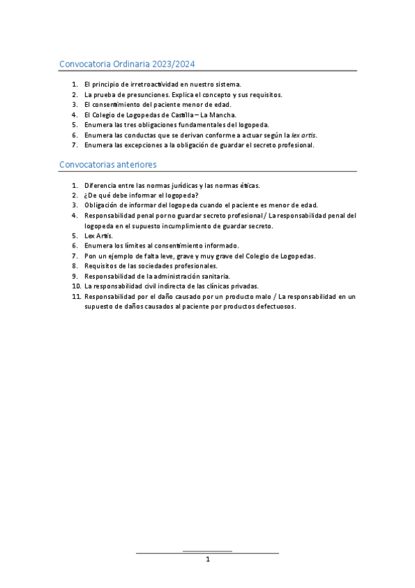 He publicado nuevos examenes de 2º Derecho, bioética y logopedia: Convocatoria ordinaria (23/24 y años anteriores) - DERECHO, BIOETICA Y LOGOPEDIA.pdf
