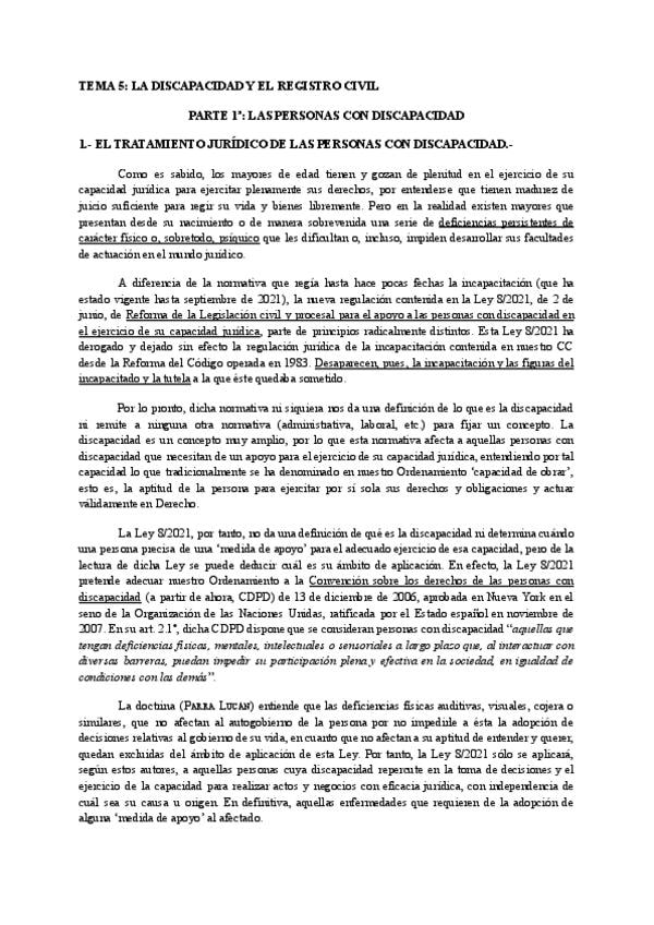 He publicado nuevos apuntes de 1º Derecho Civil General. Persona y Familia: TEMA-5-LA-DISCAPACIDAD-Y-EL-REGISTRO-CIVIL.pdf