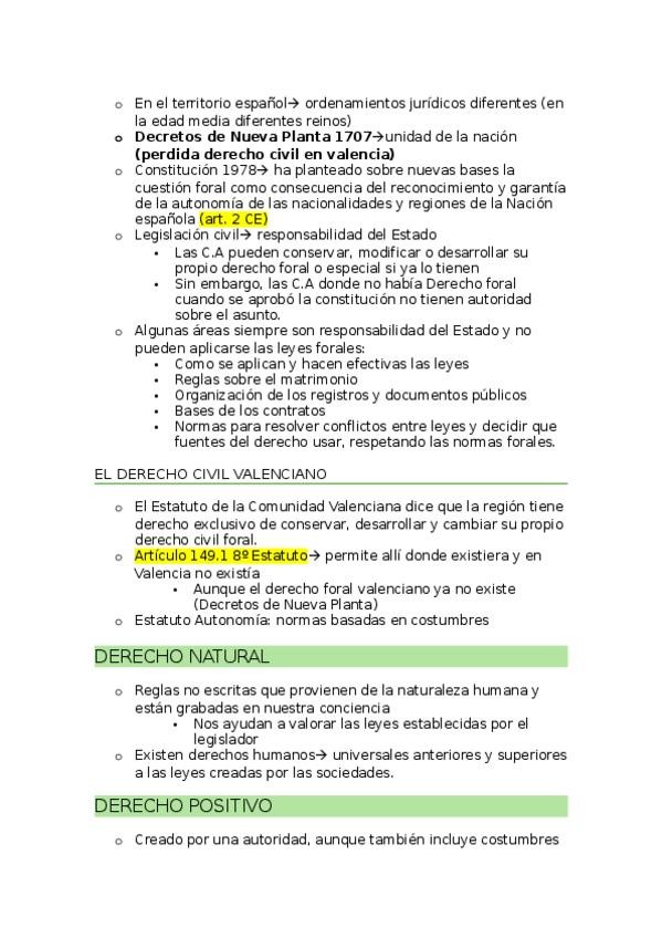 1. El dret civil: delimitació, formació i contingut. A) Concepte de dret B) Concepte de dret civil C) Caràcters del dret civil D) Contingut del dret civil E) Formació històrica del dret civil: la codificació, la descodificació, la recodificació F) Estruct